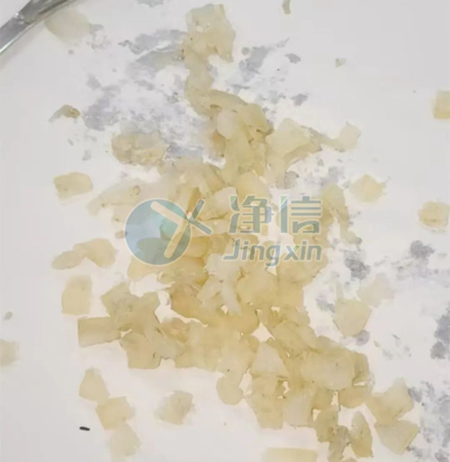 由上圖我們可以看到,經全自動浸入式液氮冷凍研磨儀處理后,塊狀牛皮被研磨成細膩的粉末,達到預期要求,適合后續分析或加工。
