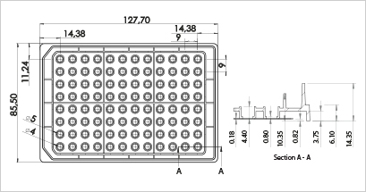 The μ-Plate Angiogenesis 96 Well can also be used as a low-volume microscopy chamber without any gel, which is useful for experiments where several wells with a low volume are required.
