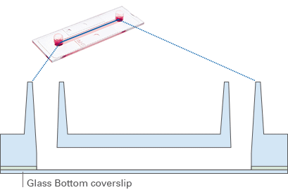 The μ-Slide I Luer Glass Bottom comes with a thin #1.5H Glass Coverslip Bottom that has the highest optical quality and is ideally suitable for high-resolution microscopy, TIRF, and super-resolution microscopy. To promote cell attachment, a surface coating might be required prior to cell seeding.