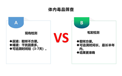 現(xiàn)今比較常見的毒檢測大致有:尿液、唾液、血液、毛發(fā),不同種類的檢材具有不同的吸毒追溯期,目前以尿液檢測較為常見。但是,體液檢查會受到時間的影響。與尿液、血液等檢材相比,毛發(fā)樣品顯著的優(yōu)勢是它延長了吸毒追溯期。毒品隨著血液循環(huán)進入毛囊,毒品原體及其代謝物會被毛發(fā)中的角質蛋白固定,并穩(wěn)定地保留在毛發(fā)中。