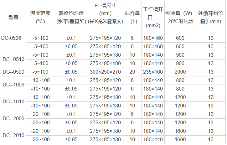 低溫恒溫槽參數(shù):
