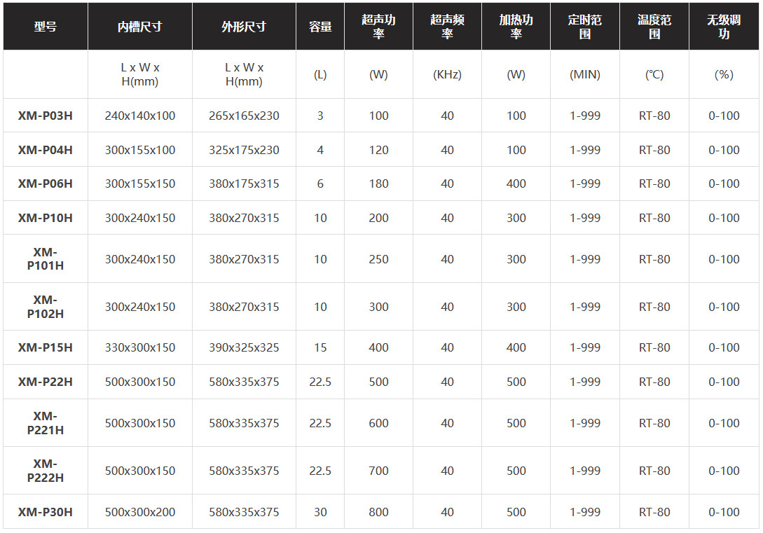 新技術具有更多性能:新一代的超聲發生器采用了先進的數字電路控制方式,主要核心配件采用德國萊比信陶瓷晶片,整個儀器的運行更加穩定高效;其中XM系列超聲運用我們研發的數字電路技術,我們的超聲與同類產品相比更具有優勢,相對于傳統超聲而言,我們的超聲探頭不易損耗,可以連續長時間的工作,亦可以空載超聲;超聲波換能器我們采用了與進口超聲相媲美的陶瓷芯片,底座更采用散熱性能更好的鋁模塊,使得我們的超聲在三年之內超聲效果的衰減度不超5%;超聲調功率技術我們拋棄了傳統的可控硅控制方式,我們采用了穩定性更高的固態繼電器來控制超聲的調功率,我們的功率變化更具線性化,在這領域內具有領先優勢。中國制造,也可驕傲。